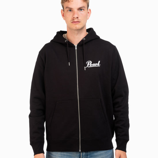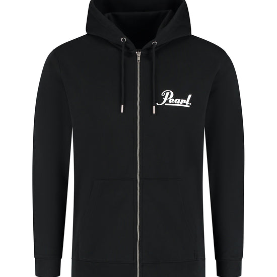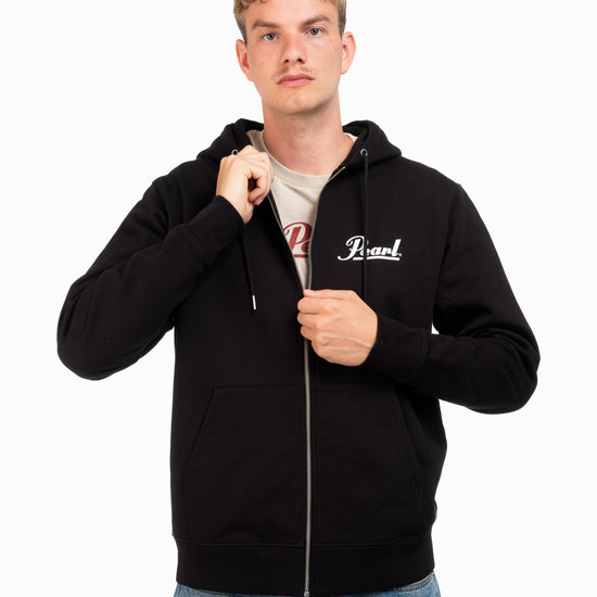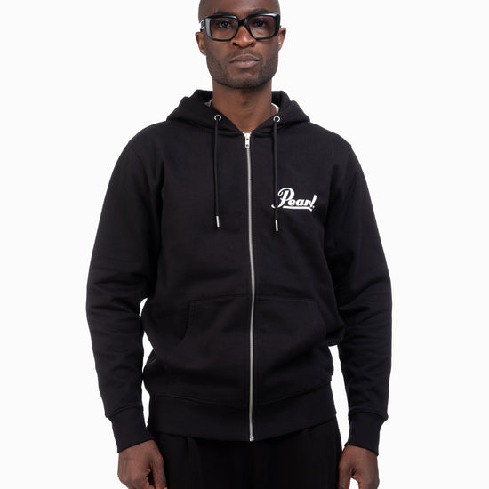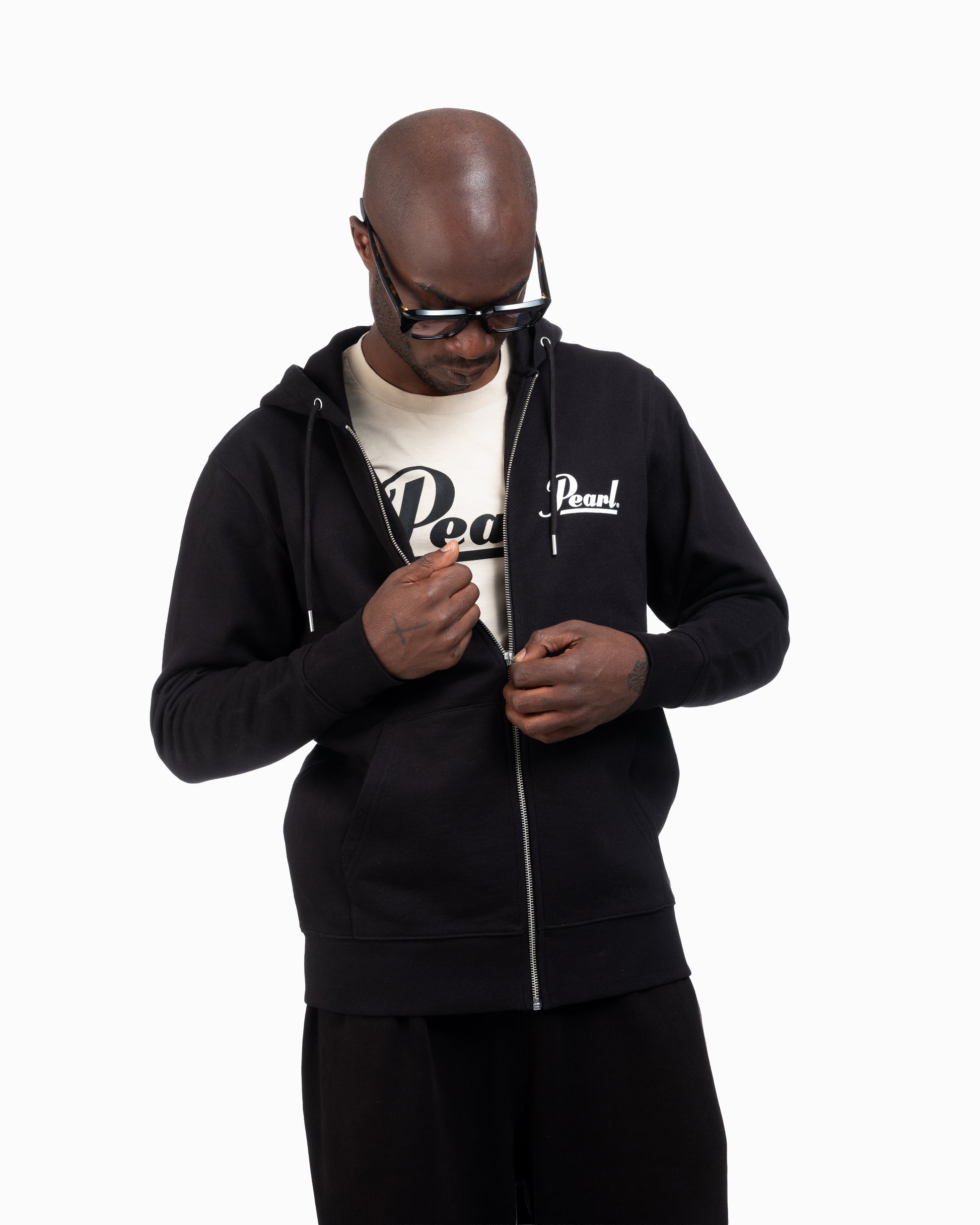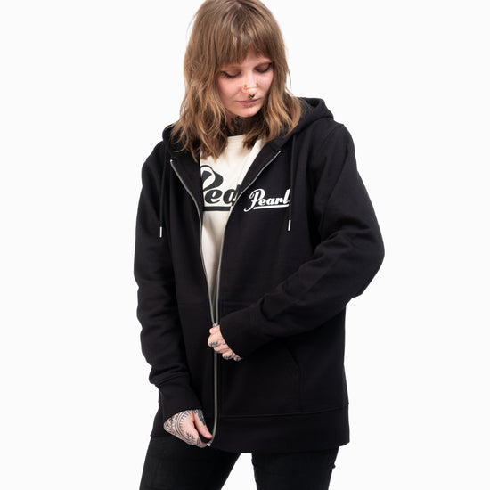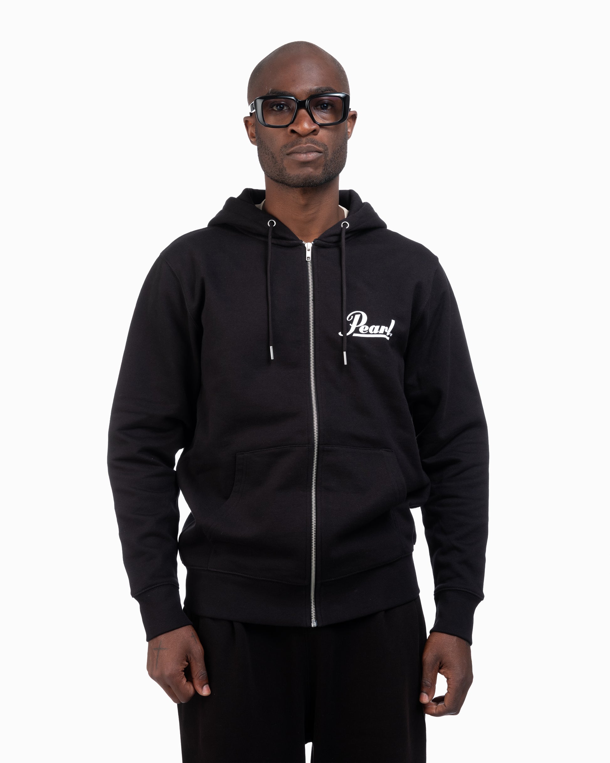 The Pearl Drums Logo Zipper is made from brushed 100% organic cotton with a soft inside and an exposed metal zip for easy layering. It features a double-layer hood, front kangaroo pockets, and a Pearl logo print on the left chest. The unisex fit is true to size and finished with metal details and clean stitching throughout, making it an easy grab for studio days, travel, or downtime.
