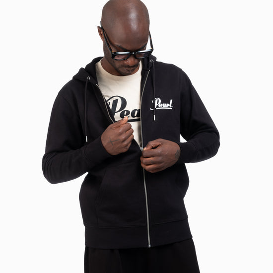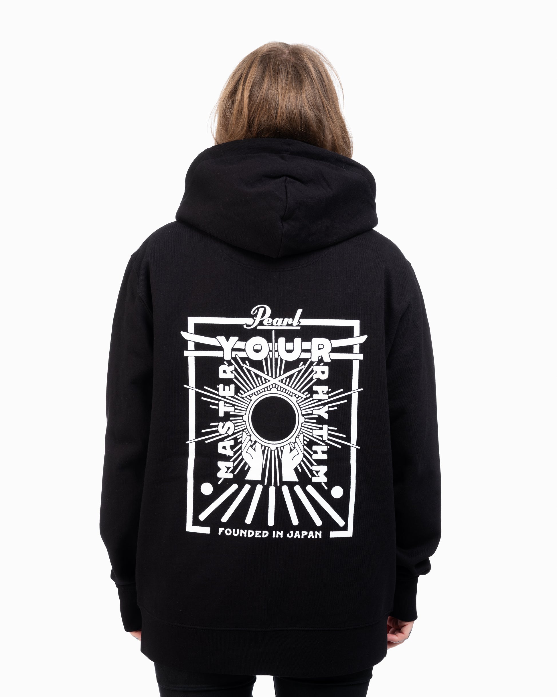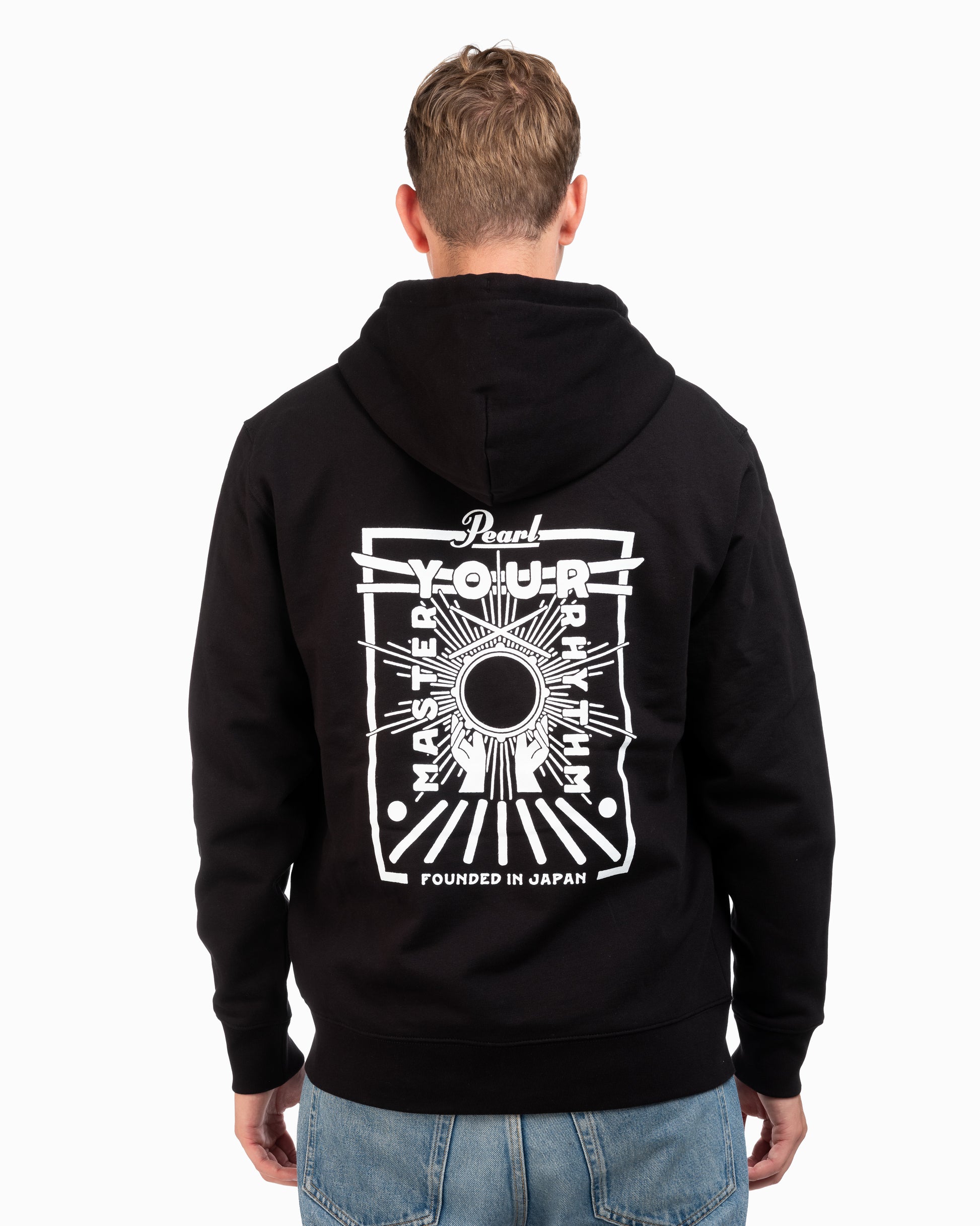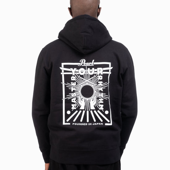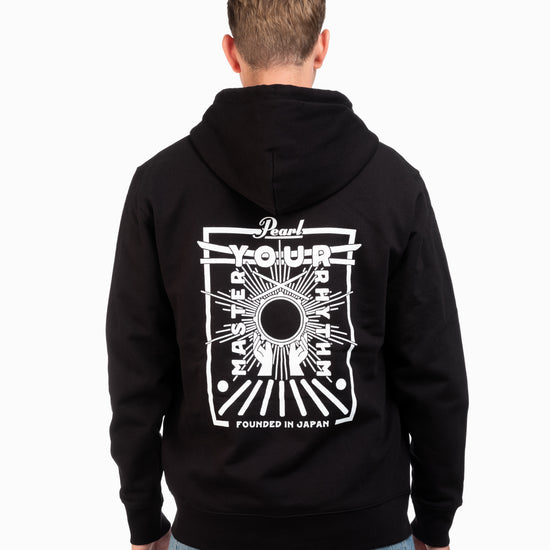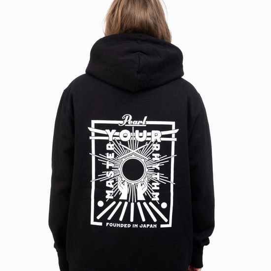 The Pearl Drums Zipper Master Your Rhythm pairs soft, brushed organic cotton with a detailed back print inspired by Japanese culture and the pursuit of mastery. At the center, a snare drum echoes the rising sun, surrounded by hands in praise- an emblem of respect for the instrument and its craft. The design includes a Torii gate and the words “Founded in Japan,” marking Pearl’s origin in 1946. With a full-length zip, double-layer hood, and left chest logo print, it’s made to be worn on the move, whether you’re traveling, rehearsing, or in between shows.